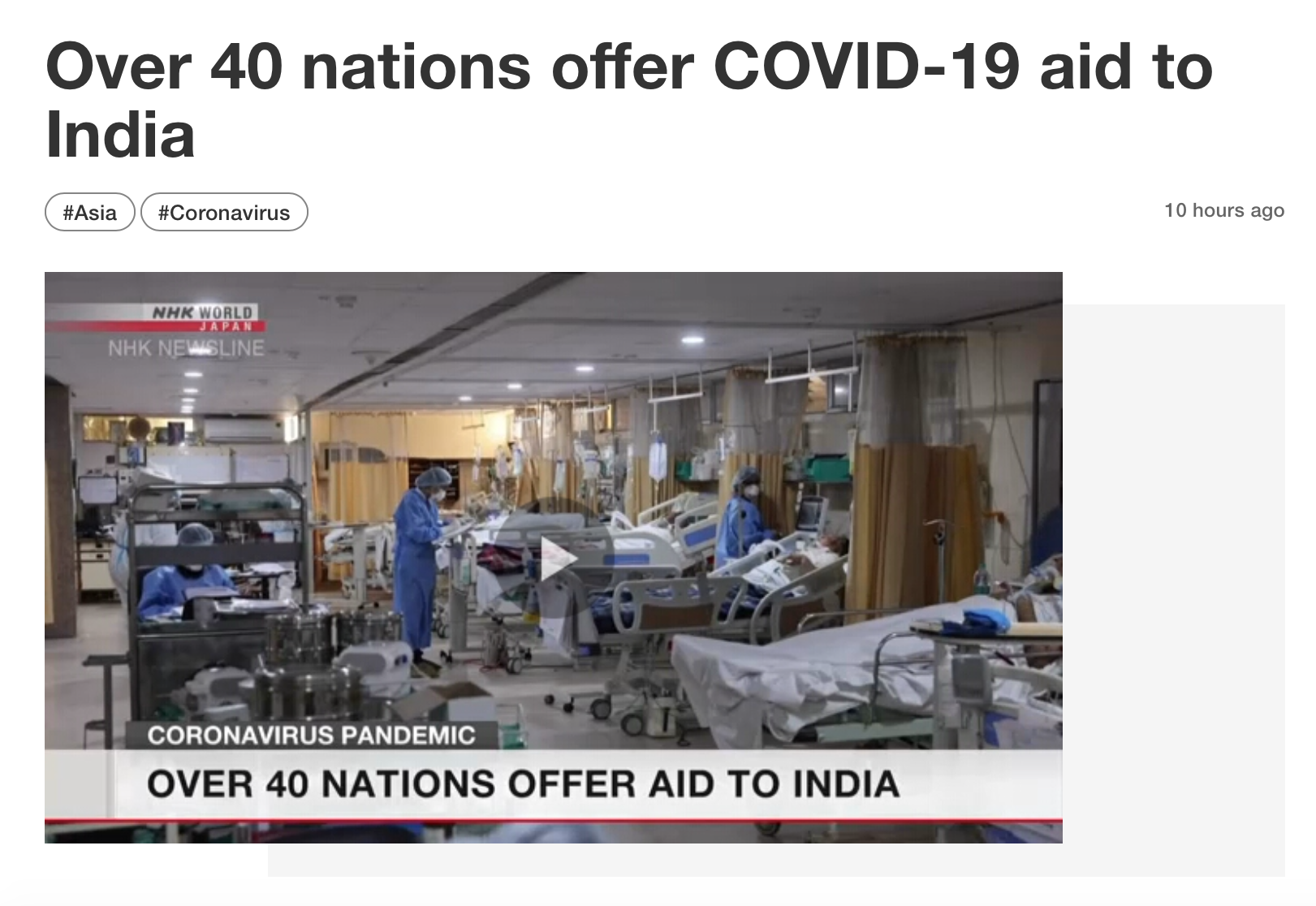 インド外務省は、ヨーロッパや中東、アジアなど40か国以上が医療機器や薬の提供を申し出があったことを伝えた。