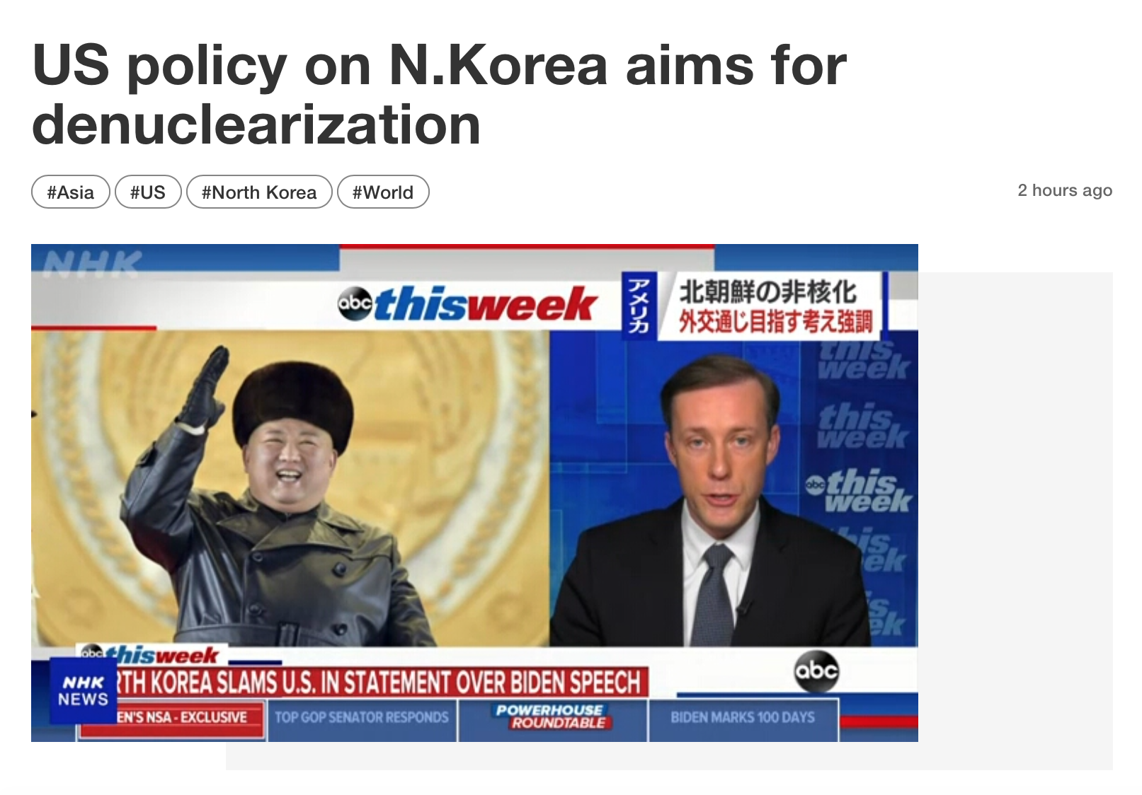 サリバン大統領補佐官は日曜日、ABCテレビに出演し、対北朝鮮政策について明らかにし、ワシントンは最終的な目標に向けて外交交渉を行う準備がされていると述べた。